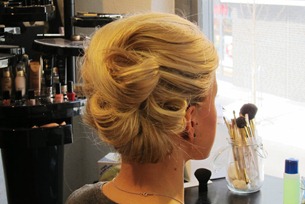 Und das kam dabei raus: Eine seitliche, eher tief liegende, romantisch gesteckte Frisur.
