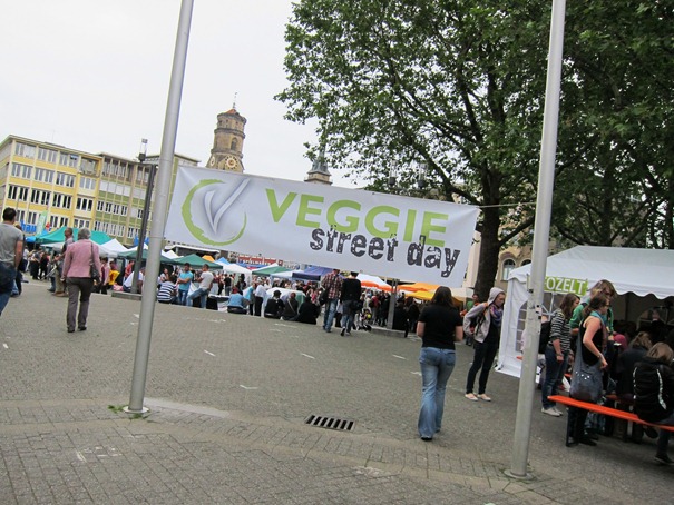 Der einzige richtige Programmpunkt, den wir fürs Wochenende hatte, war der Veggie Street Day, der heute auf dem Marktplatz in Stuttgart stattgefunden hat.